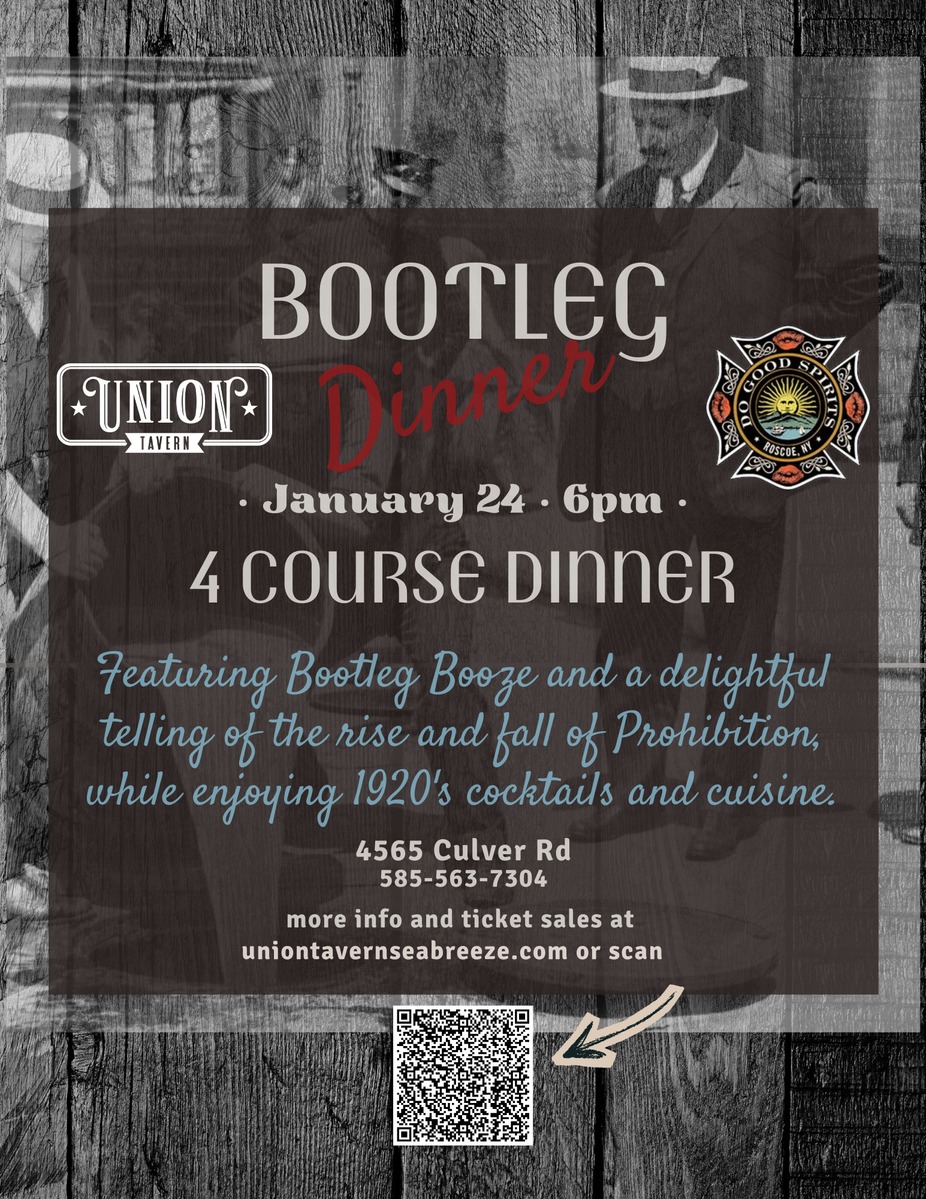 Join us for an unforgettable evening upstairs at The Union Tavern as we partner with Do Good Spirits for a Prohibition-era four-course dinner inspired by the rise, rebellion, and fall of America’s most notorious era.