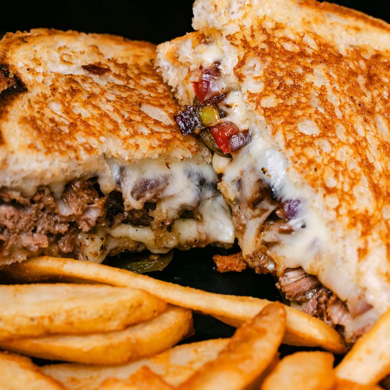 Slow braised beef, provolone, cherry peppers, grilled onions on grilled sourdough