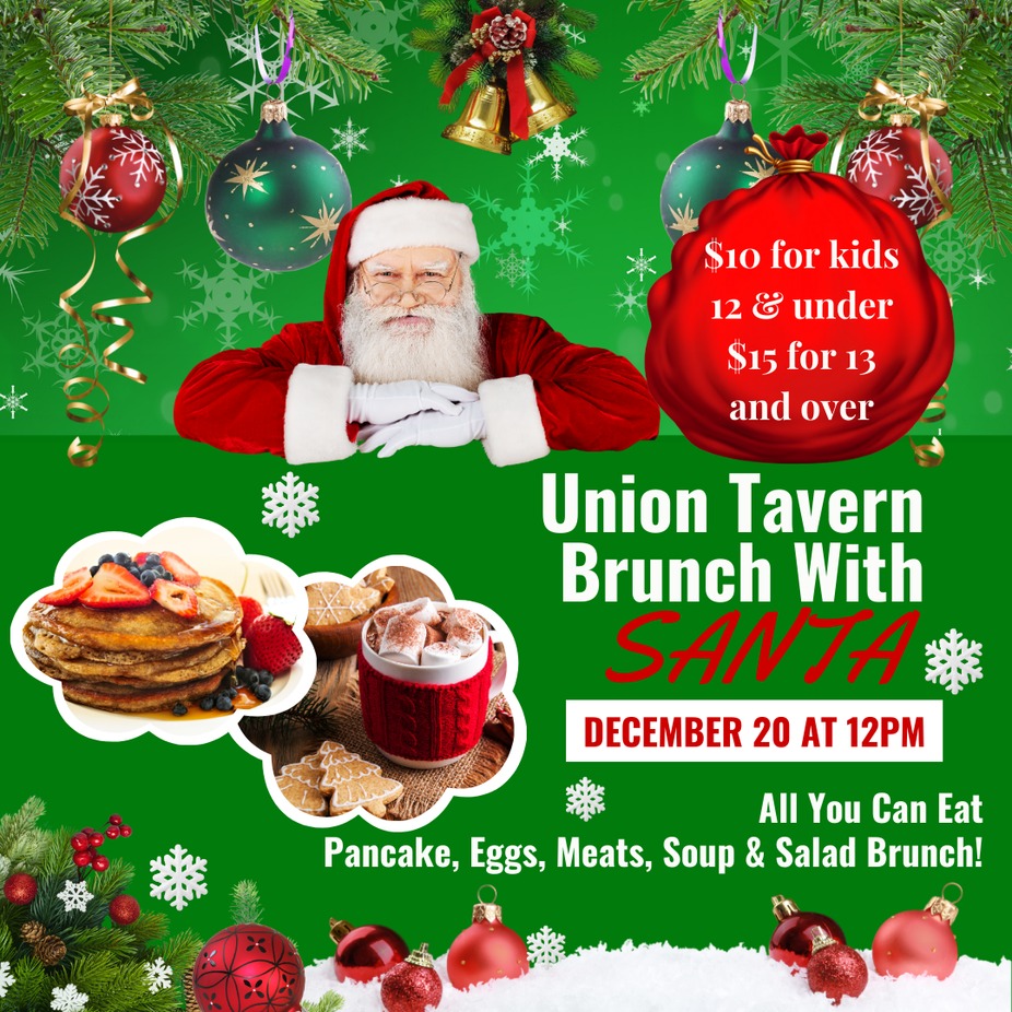 Come have a delicious brunch with Santa! Unlimited pancakes, breakfast meats, soup and salad. Santa will be joining with some treat for everyone. Call for reservations, this sold out quick last year!
